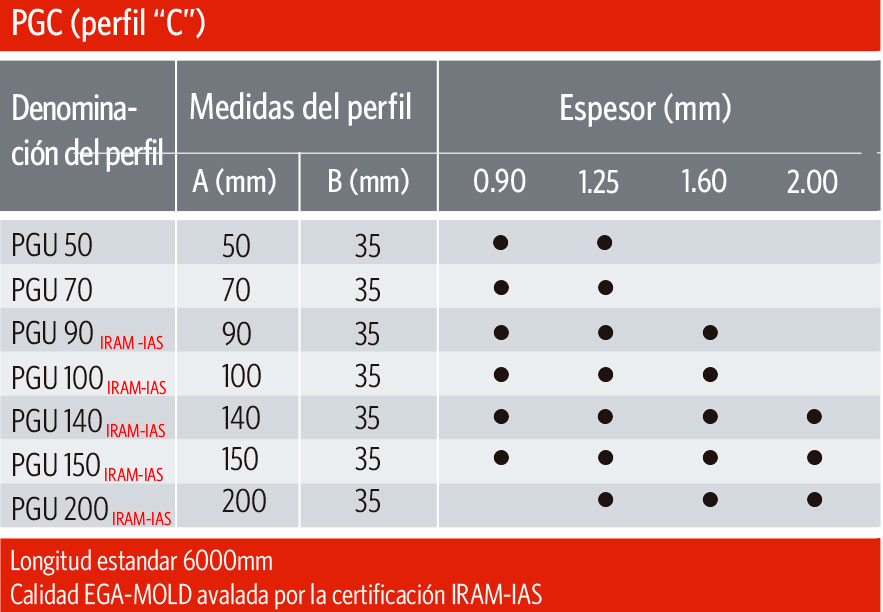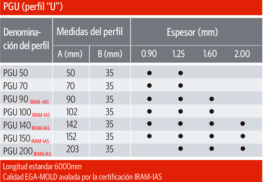 - Los perfiles EGA-MOLD tienen certificado de calidad de producto IRAM IAS U 500-205